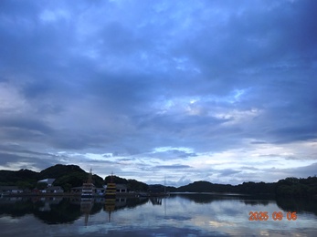 何時もの起床時間(4時半)には雨が強く降っていたので「ウォーキングは中止だな」と思いひと眠りした。しかし、5時半に起床したら、びっくりする程晴れていた。天気予報がはずれたのである。