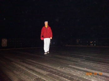 道路にも雪が積もり始めたのでシューズに”すべり止め”を装着して出発した・・が、雪は止んだり、霙(みぞれ)になったりで”すべり止め”は役に立たなかった。